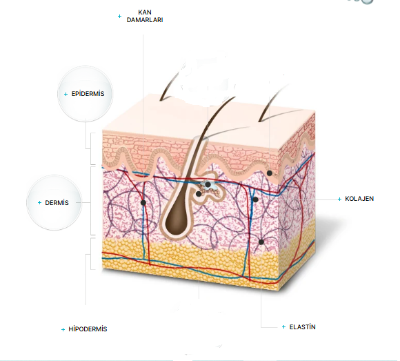 Çoğumuz genelde gözardı etsek de yaklaşık 2 metrekare ağırlığı ve 10 kg ağırlığıyla vücudumuzun en büyük organıdır. Üstelik sürekli dış dünyadaki birçok fiziksel ve kimyasal zararlı etkenlere maruz kalarak hem estetik hem de sağlık açısından birçok görevi yerine getirmek zorundadır. Temel bileşenleri cilde sağlamlık ve gerginlik sağlayan Kollagen ve cildin esnek ve elastikiyetini sağlayan Elastin proteinleri ve cildin nem dengesi ve  pürüzsüz görünüm veren Hyaluronik asit’tir.